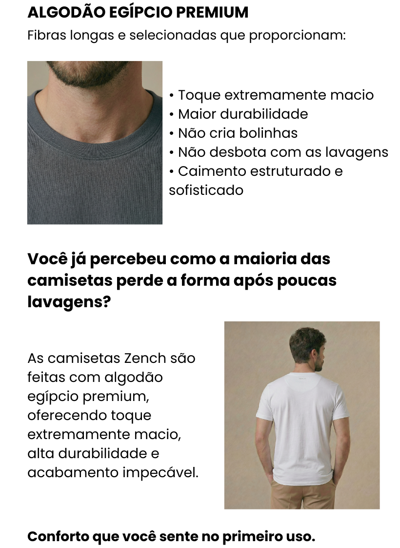 Zench — minimalismo, qualidade e sofisticação que se sente ao vestir.